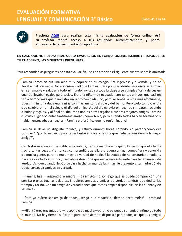 Lenguaje y comunicación 3° básico - Evaluación Semana 11