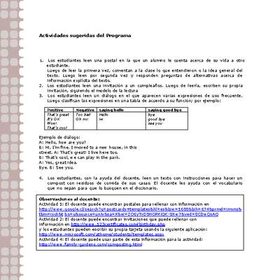 - palabras clave, expresiones de uso común asociadas a las funciones del nivel (por ejemplo: I'm sorry, excuse me) y vocabulario temático.