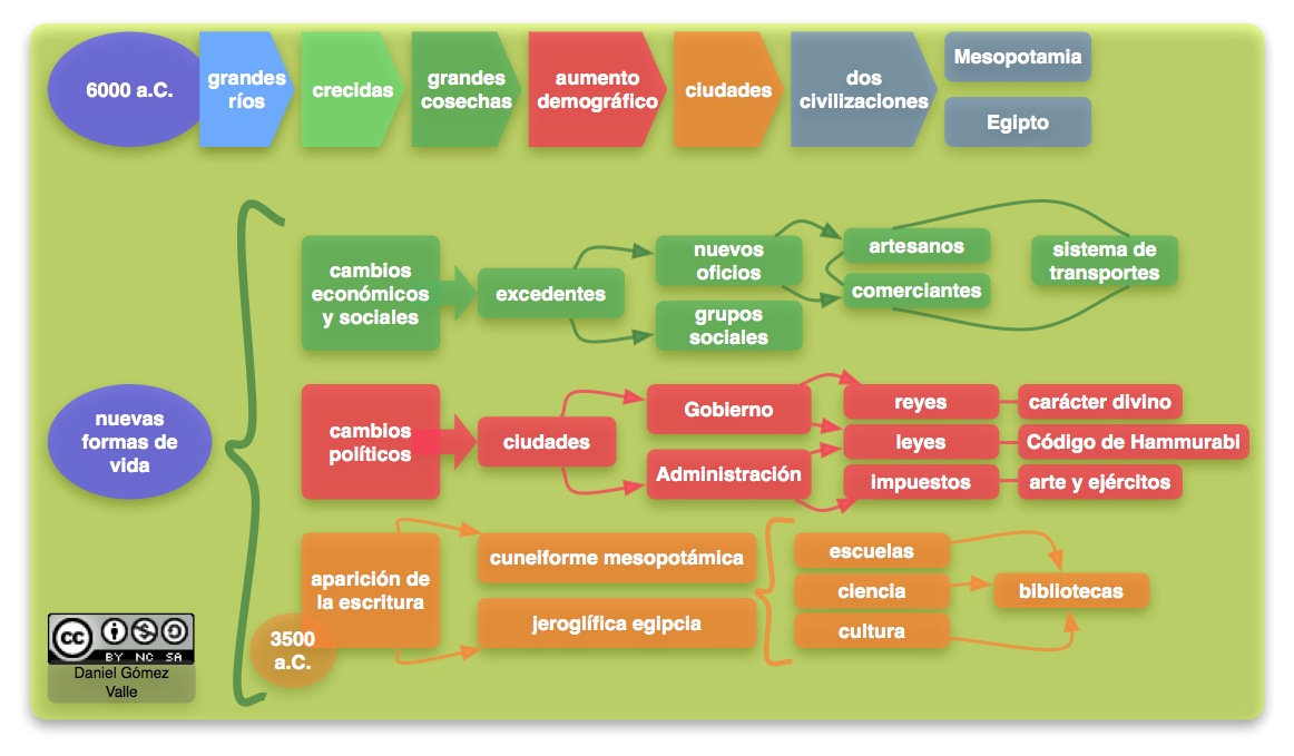 Caracterizar el surgimiento de las primeras civilizaciones (por ejemplo, sumeria, egipcia, china, india, minoica, fenicia, olmeca y chavín, entre otras), reconociendo que procesos similares se desarrollaron en distintos lugares y tiempos.