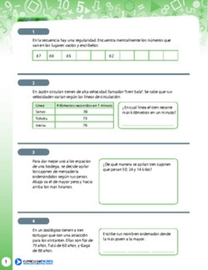 Completar una secuencia numérica, resolver problemas aplicando la comparación de cantidades representadas en números de hasta dos dígitos y ordenar números de menor a mayor y de mayor a menor