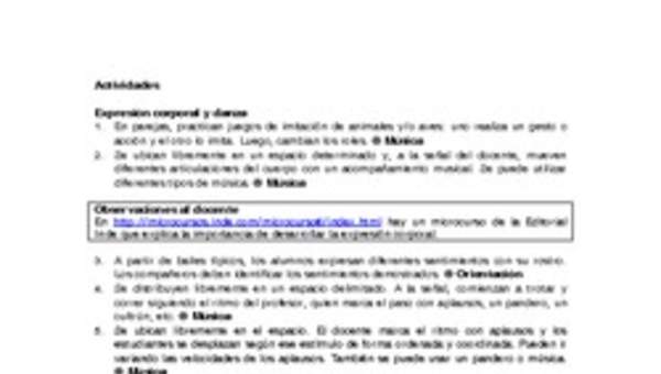 Formas de expresión como rondas o bailes. Formas de registro de actividad física diaria. Reglas de juego. Esquema corporal.
