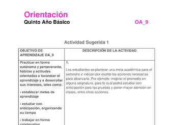 Actividad sugerida: Orientación 5° básico OA09 Actividad 1