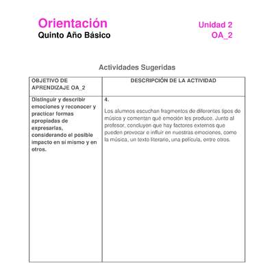 Actividad sugerida: Orientación 5° básico OA02 Actividad 4