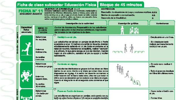 Ficha con un modelo de planificación de una clase para desarrollar las habilidades motrices básicas de locomoción, manipulación y estabilidad.