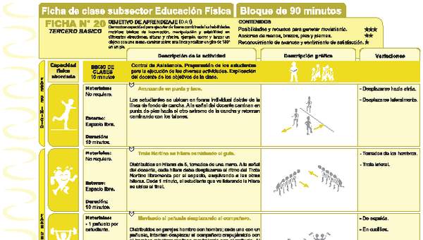 Ficha con un modelo de planificación de una clase para desarrollar las habilidades motrices básicas de locomoción, manipulación y estabilidad.