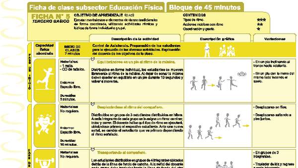 Ficha con un modelo de planificación de una clase para el desarrollo de la expresión corporal y la danza.