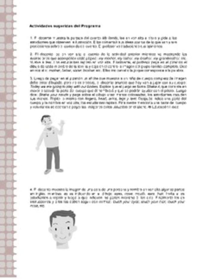 Demostrar comprensión de textos orales: identificando personajes, objetos y animales -la escuela, animales salvajes, partes de la casa y muebles, figuras geométricas, ocupaciones, lugares en la ciudad, comida, celebraciones (Easter)-; siguiendo instrucciones simples; identificando palabras, expresiones de uso muy frecuente y vocabulario aprendido; identificando sonidos propios del inglés que pueden interferir en la comprensión, como /s/-/z/, /w/-/th/.