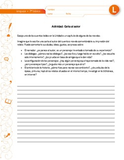 Actividad en la cual los alumnos escriben una carta al autor de un cuento o novela que hayan leído en la unidad.