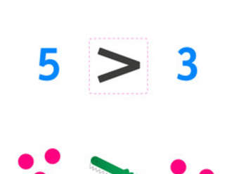 Imagen que muestra el símbolo mayor que de forma pictórica y simbólica