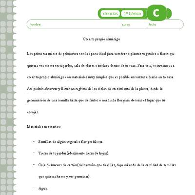 Actividad que describe los pasos para crear un almácigo y registrar observaciones de su desarrollo.