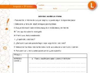 Actividad en la que los alumnos escriben un texto informativo, a partir de pautas dadas.
