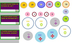 Juego interactivo que consiste en calcular el total de dinero obtenido al sumar monedas de un determinado valor.