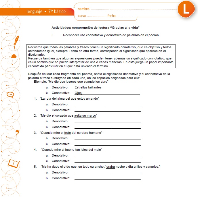 Palabras claves: Gracias a la vida / Lenguaje figurado / connotativo / poema / violeta parra