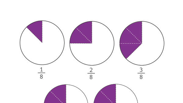 Imagen que muestra fracciones propias con denominador ocho que puede ser usada con distintos fines pedagógicos.