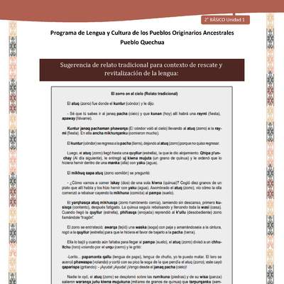 Lengua y Cultura de los Pueblos Originarios Ancestrales 2° básico