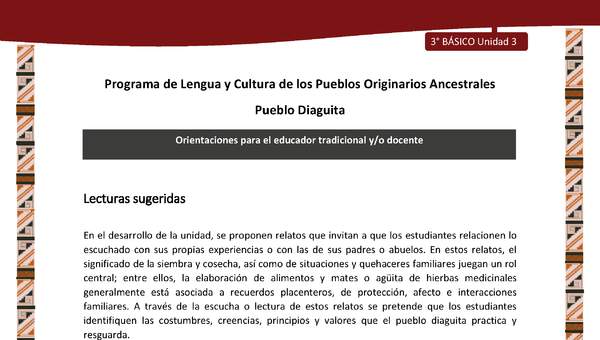 Inicio > Educación general (EG) > Lengua y Cultura de los Pueblos Originarios Ancestrales > Lengua y Cultura de los Pueblos Originarios Ancestrales 3° básico