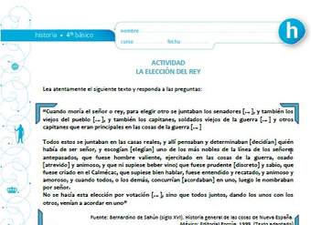 Actividad sobre la elección del un rey azteca comparándola con la elección del presidente en Chile