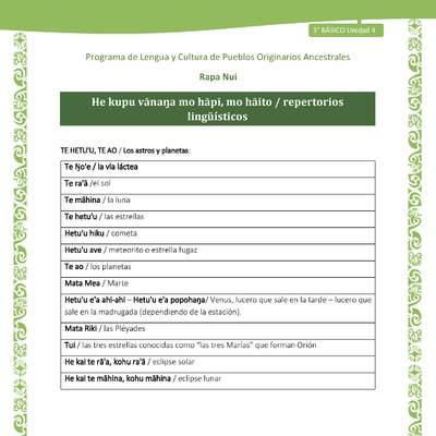 He kupu vānaŋa mo hāpī, mo hāito / repertorios lingüísticos
