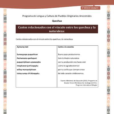Cantos relacionados con el vínculo entre los quechua y la naturaleza