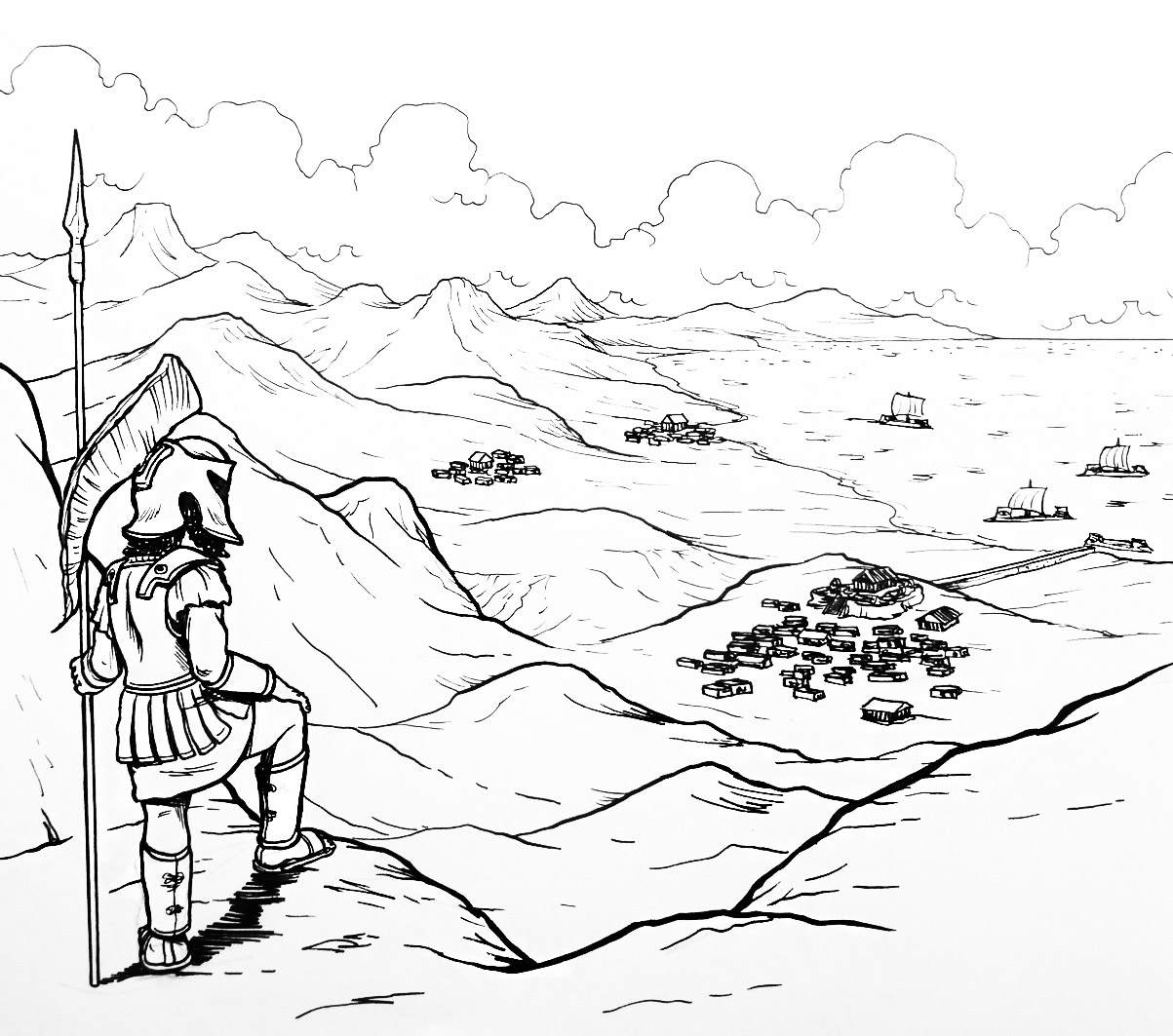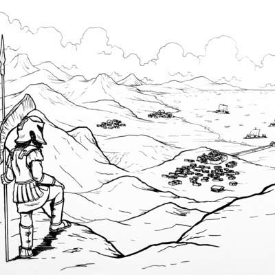 Ilustración de la geografía griega (blanco y negro)
