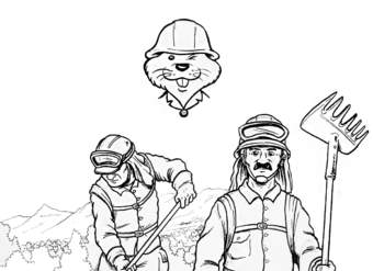 Ilustración que representa el trabajo de la Corporación Nacional Forestal (blanco y negro)