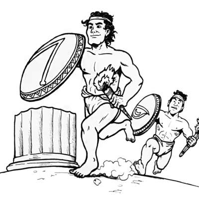 Ilustración que representa los juegos olímpicos de la antigüedad (blanco y negro)