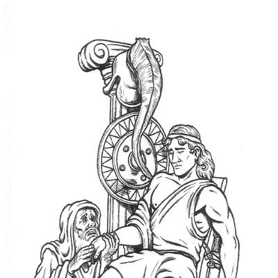 Imagen que representa una escena de la Iliada (blanco y negro)