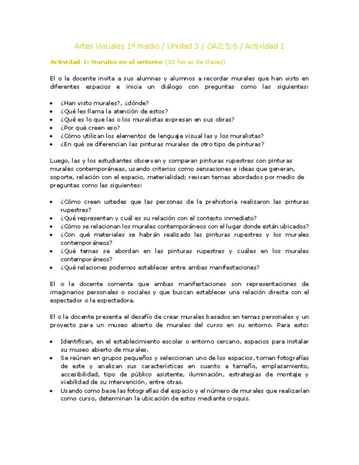 Artes Visuales 1 medio-Unidad 3-OA2;5;6-Actividad 1