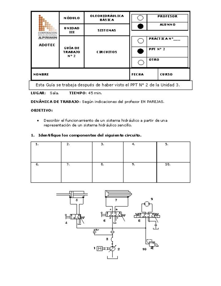 Guía de trabajo del estudiante Oleo-hidráulica circuitos
