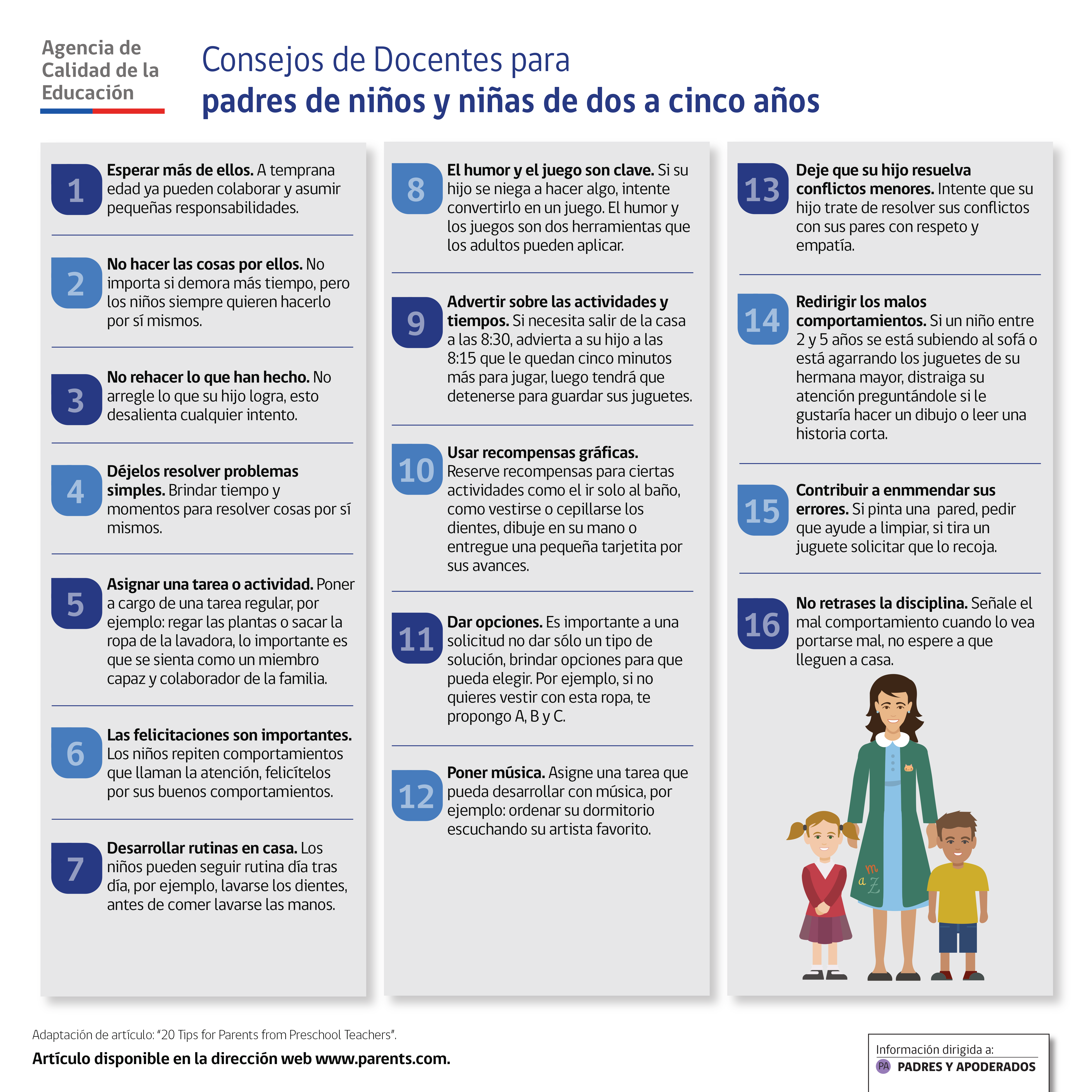 Consejos de docentes para padres de niños y niñas de dos a cinco años