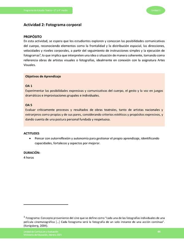 Evaluar críticamente procesos y resultados de obras teatrales, tanto de artistas nacionales y extranjeros como propias y de sus pares, considerando criterios estéticos y propósitos expresivos, y dando cuenta de una postura personal fundada y respetuosa.
