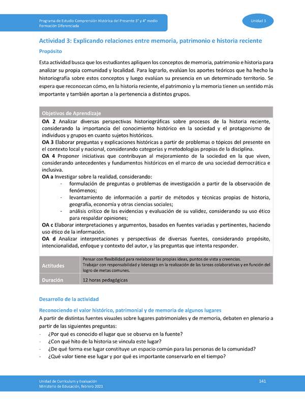 - Levantamiento de información a partir de métodos y técnicas propias de historia, geografía, economía y otras ciencias sociales.