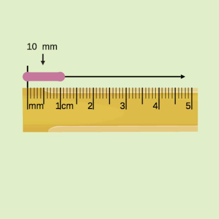 Las conversiones de mediciones dentro del sistema métrico se hacen más fáciles debido a su sistema de base 10. Has encontrado un gusano en el suelo y te gustaría medirlo con esta regla métrica. Estira el gusano arrastrando el extremo derecho y mídelo.