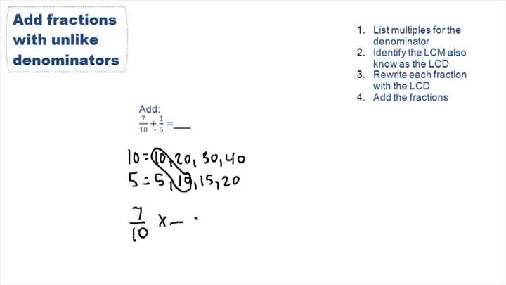 Conceptos: Add Fractions with Different Denominators - Adding Fractions with Different Denominators