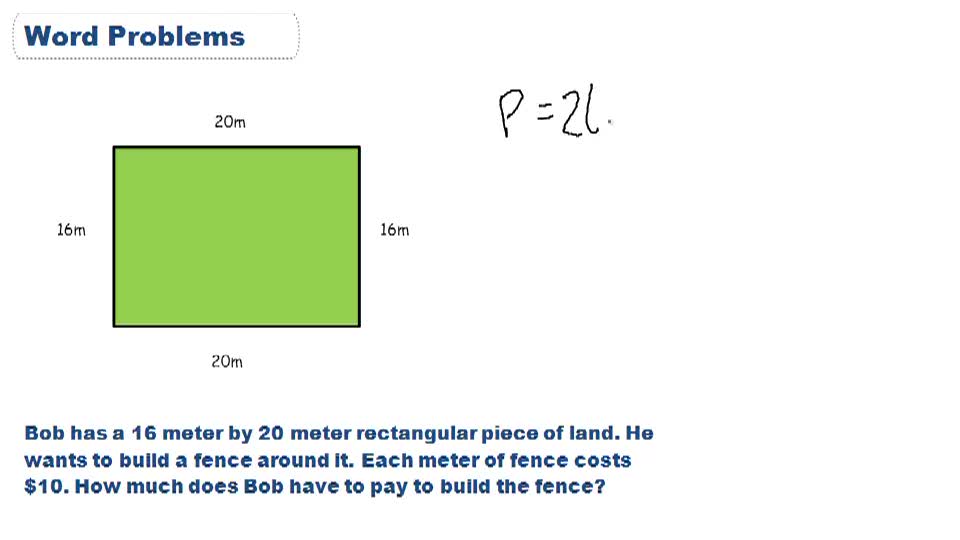 Descripción general del área de cuadrados y rectángulos - Problemas verbales