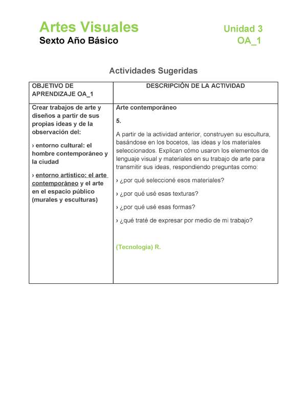 Analizar e interpretar obras de arte y objetos en relación con la aplicación del lenguaje visual, contextos, materiales, estilos u otros. (Observar anualmente al menos 50 obras de arte del arte chileno, latinoamericano y universal).