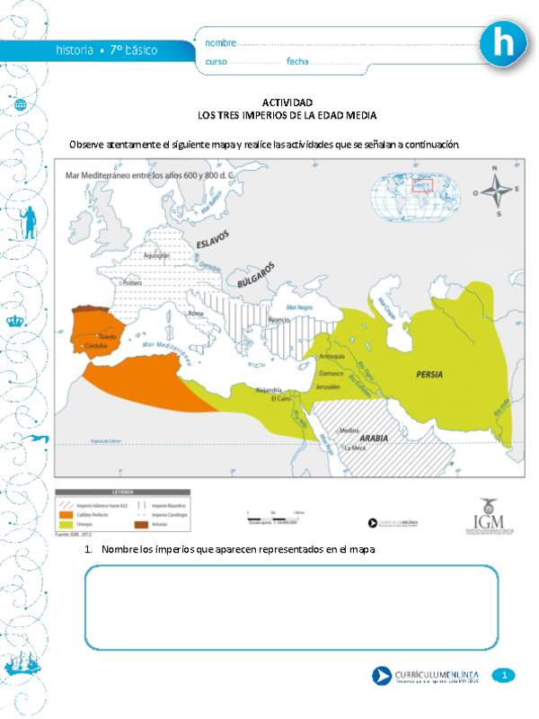 Analizar ejemplos de relaciones de influencia, convivencia y conflicto entre el mundo europeo, el bizantino y el islámico durante la Edad Media, considerando la división del cristianismo y las relaciones de frontera entre la cristiandad y el islam en la península ibérica, entre otros.