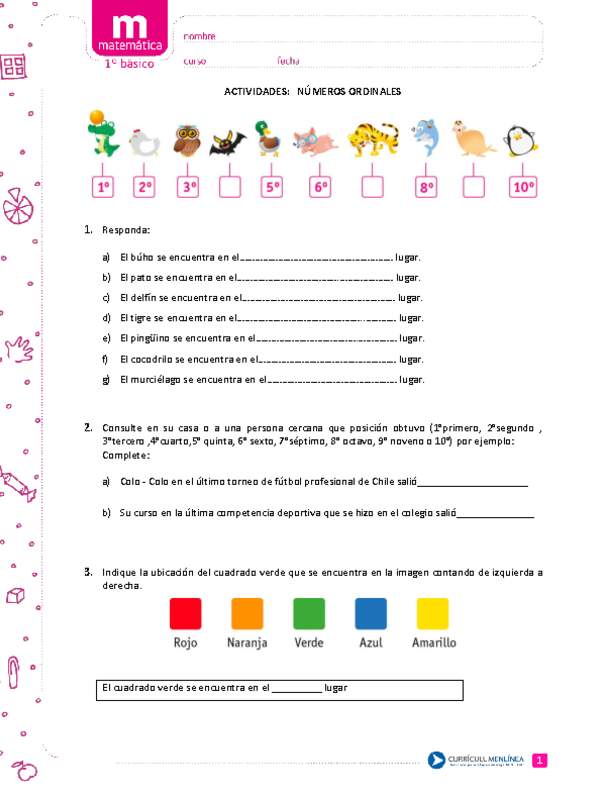 Identificar el orden de los elementos de una serie, utilizando números ordinales del primero (1º) al décimo (10º).