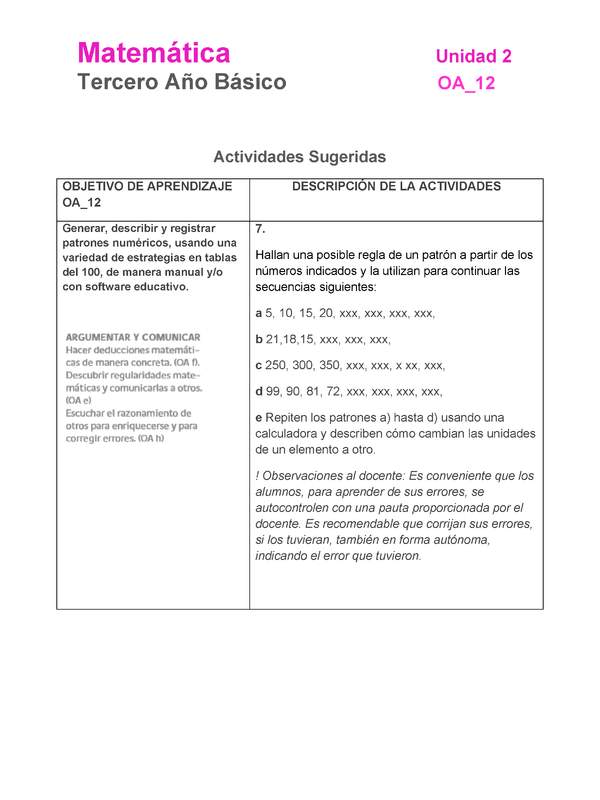 Argumentar y comunicar: Descubrir regularidades matemáticas -la estructura de las operaciones inversas, el valor posicional en el sistema decimal, patrones como los múltiplos- y comunicarlas a otros.