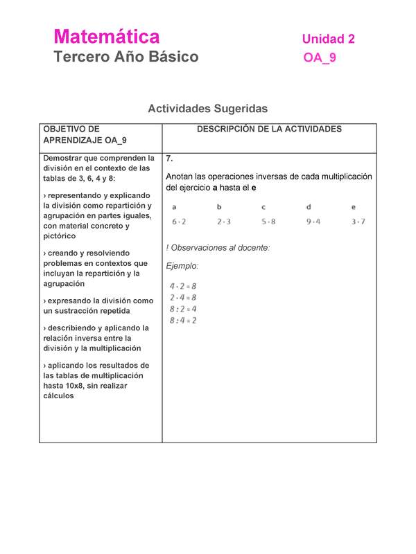 - describiendo y aplicando la relación inversa entre la división y la multiplicación