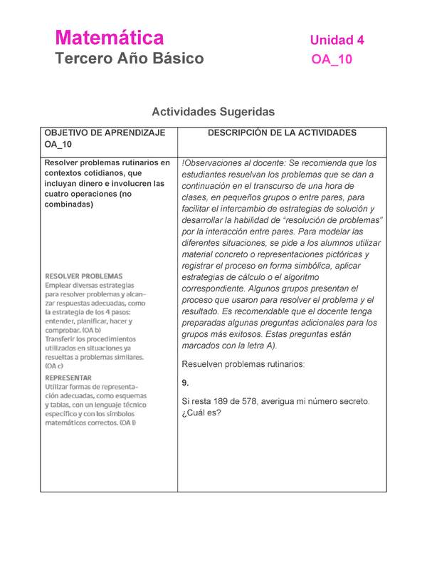 Resolver problemas rutinarios en contextos cotidianos, que incluyan dinero e involucren las cuatro operaciones (no combinadas).
