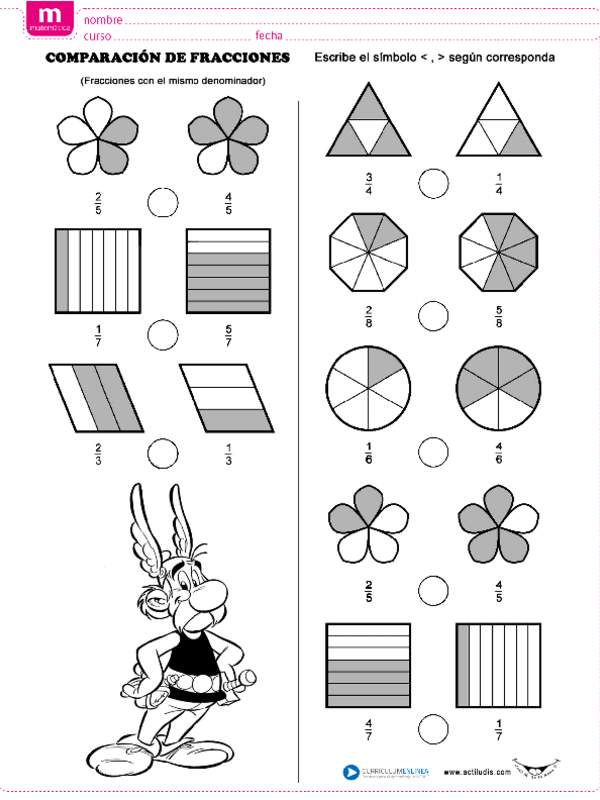 Demostrar que comprenden las fracciones de uso común: 1/4 , 1/3 , 1/2 , 2/3 , 3/4: