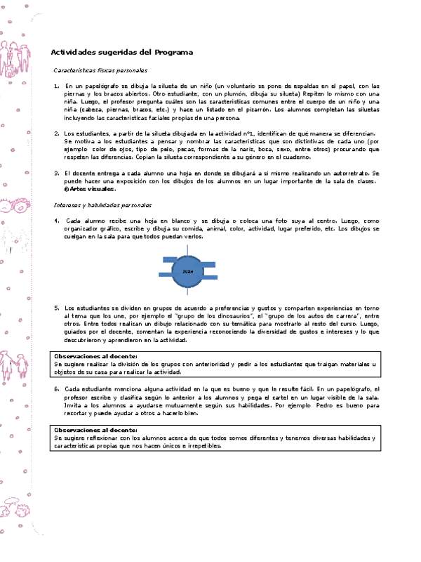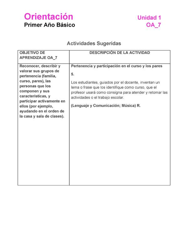 Reconocer, describir y valorar sus grupos de pertenencia (familia, curso, pares), las personas que los componen y sus características, y participar activamente en ellos (por ejemplo, ayudando en el orden de la casa y sala de clases).