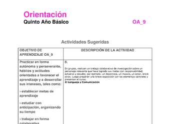 Actividad sugerida: Orientación 5° básico OA09 Actividad 8