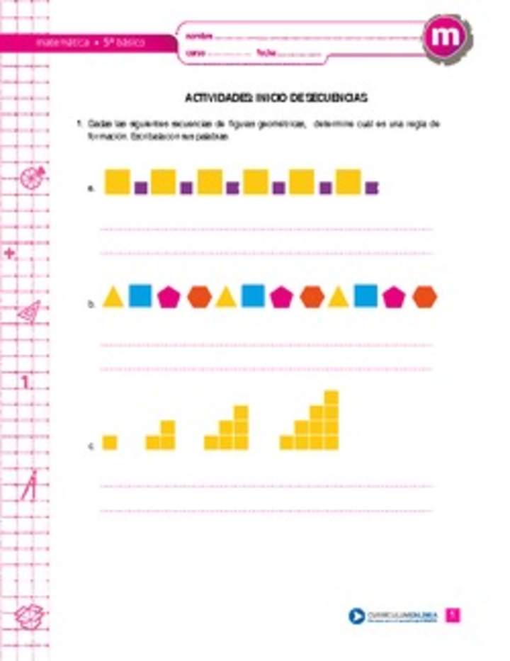 Guía de ejercicios que implica encontrar una regla de formación de sucesiones en figuras o tablas