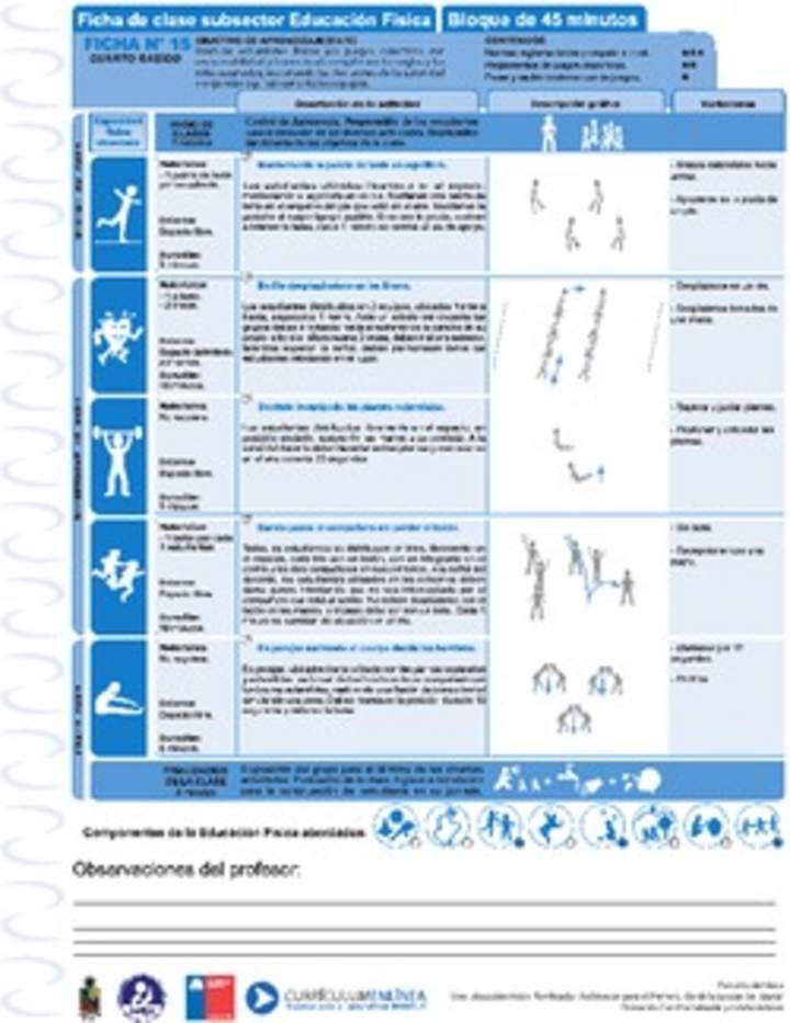Ficha con un modelo de planificación de una clase enfocado a juegos de trabajo en equipo y cooperación.