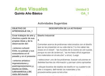 Crear trabajos de arte y diseños a partir de sus propias ideas y de la observación del: entorno cultural: Chile, su paisaje y sus costumbres en el pasado y en el presente; entorno artístico: impresionismo y postimpresionismo; diseño en Chile, Latinoamérica y del resto del mundo.