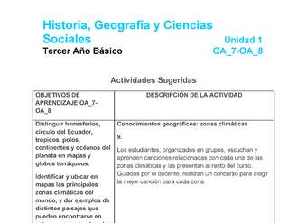 Identificar y ubicar en mapas las principales zonas climáticas del mundo y dar ejemplos de distintos paisajes que pueden encontrarse en estas zonas y de cómo las personas han elaborado diferentes estrategias para habitarlos.