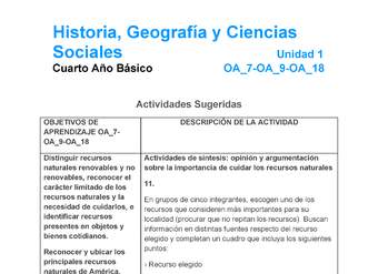 Distinguir recursos naturales renovables y no renovables, reconocer el carácter limitado de los recursos naturales y la necesidad de cuidarlos, e identificar recursos presentes en objetos y bienes cotidianos.