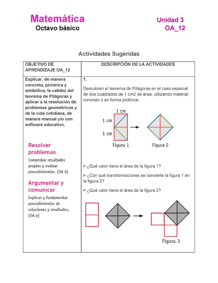 Explicar, de manera concreta, pictórica y simbólica, la validez del teorema de Pitágoras y aplicar a la resolución de problemas geométricos y de la vida cotidiana, de manera manual y/o con software educativo.